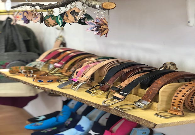 Nunca pudo imaginar que ese material, el cuero, fuera tan versátil y que facilitara tanto su arte, "me permitía pirograbarlo, repujarlo, pintarlos..., de verdad, me enamoré de él. Hago otras cosas, pero la piel hizo que empezara a hacer trabajos poco a poco, sin prisa, madurándolo". De los pendientes, brazaletes y pulseras pasó a bolsos, mochilas, cinturones y otros accesorios que requerían más tiempo, conocimiento y trabajo. Mercedes no renuncia de ninguna de las maneras a lo que ella quiere ofrecer a las personas que compramos su artesanía: "No solo tiene una parte artesanal, con buenos materiales, hecho a mano, además le doy un toque de color, un toque de trabajo artístico, de mi pintura y esa es la forma de que lo sientan únicos".